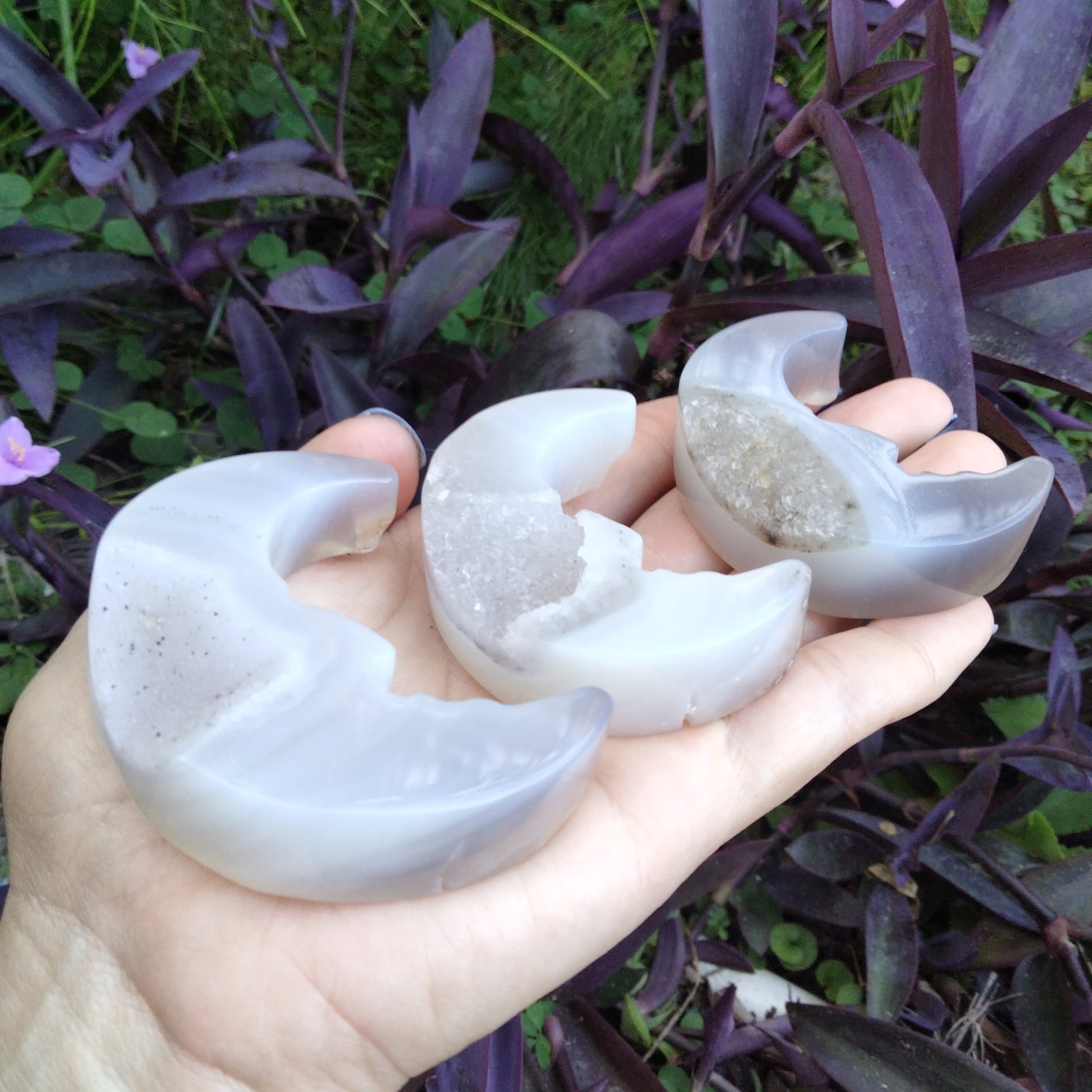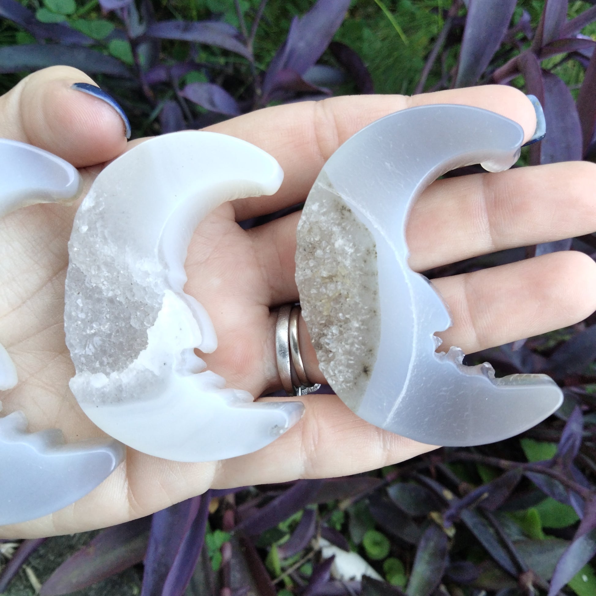 Agate moon face carving