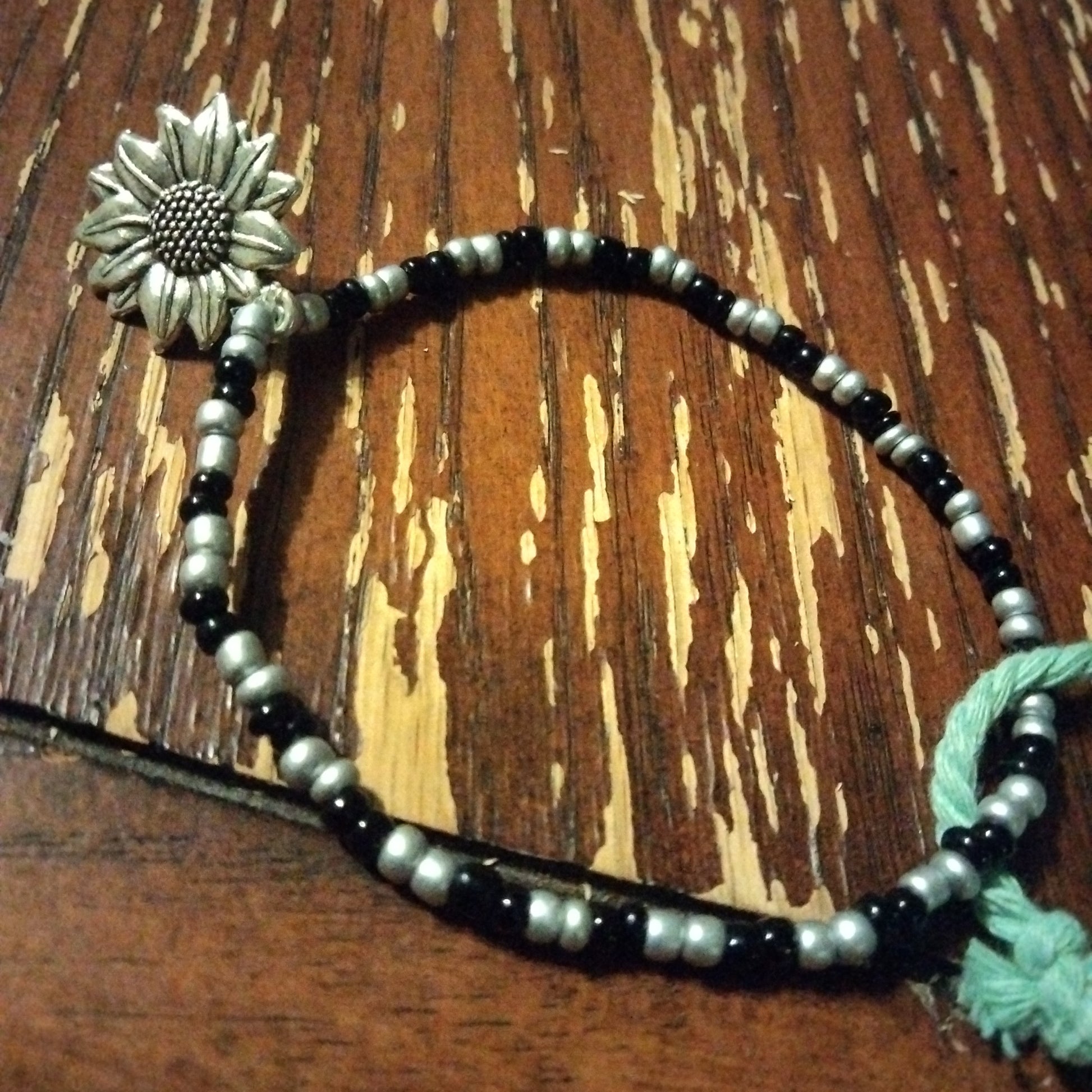 Hippie beaded bracelet with sunflower charm.