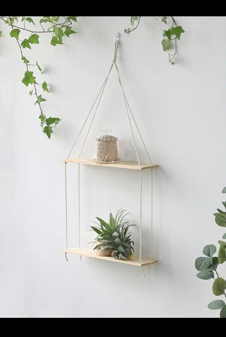 Double Shelf for earth tone office/ plant holder tropical decor