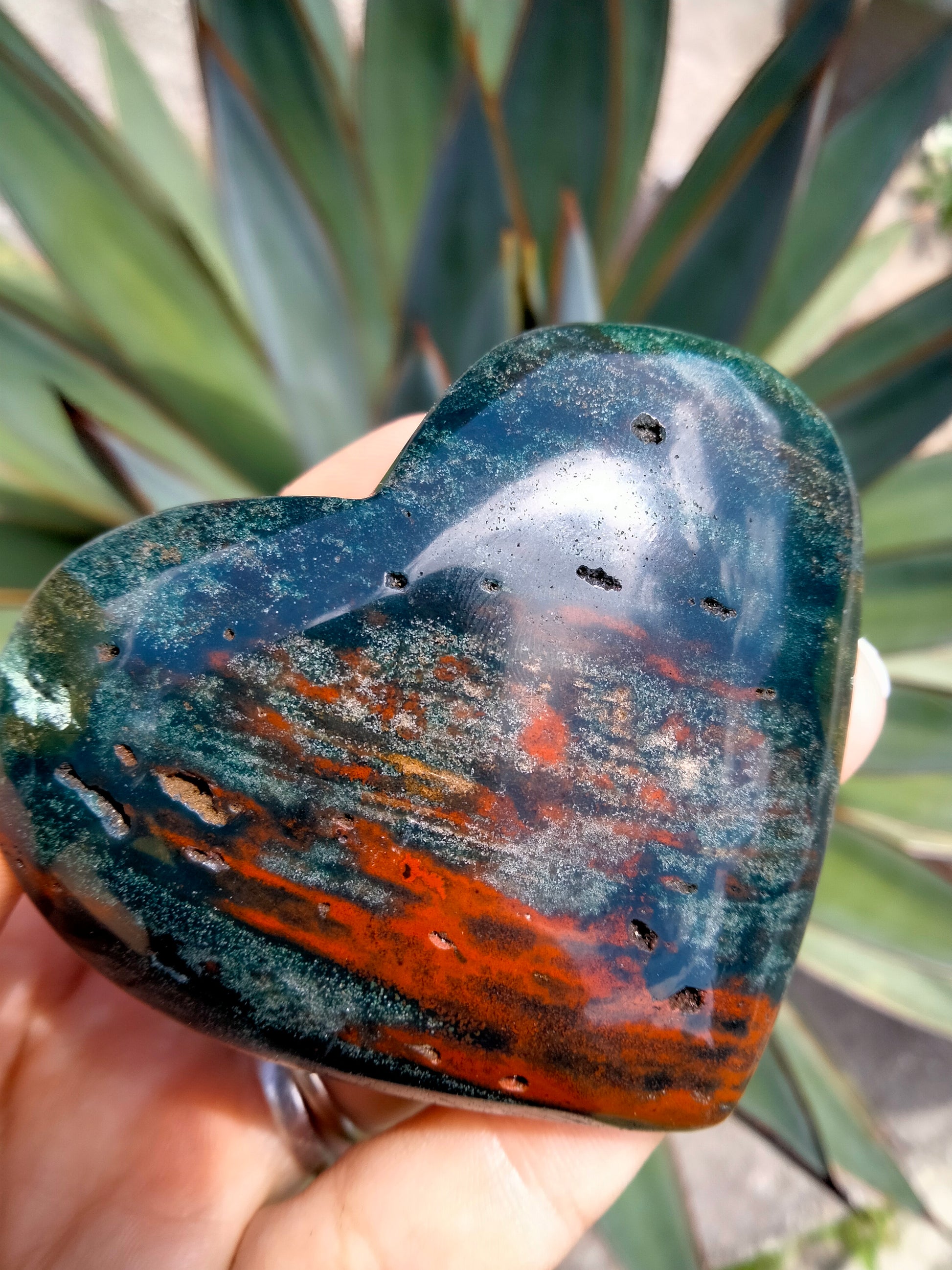 Moss Agate Crystal Heart Rare Red Jasper inclusion